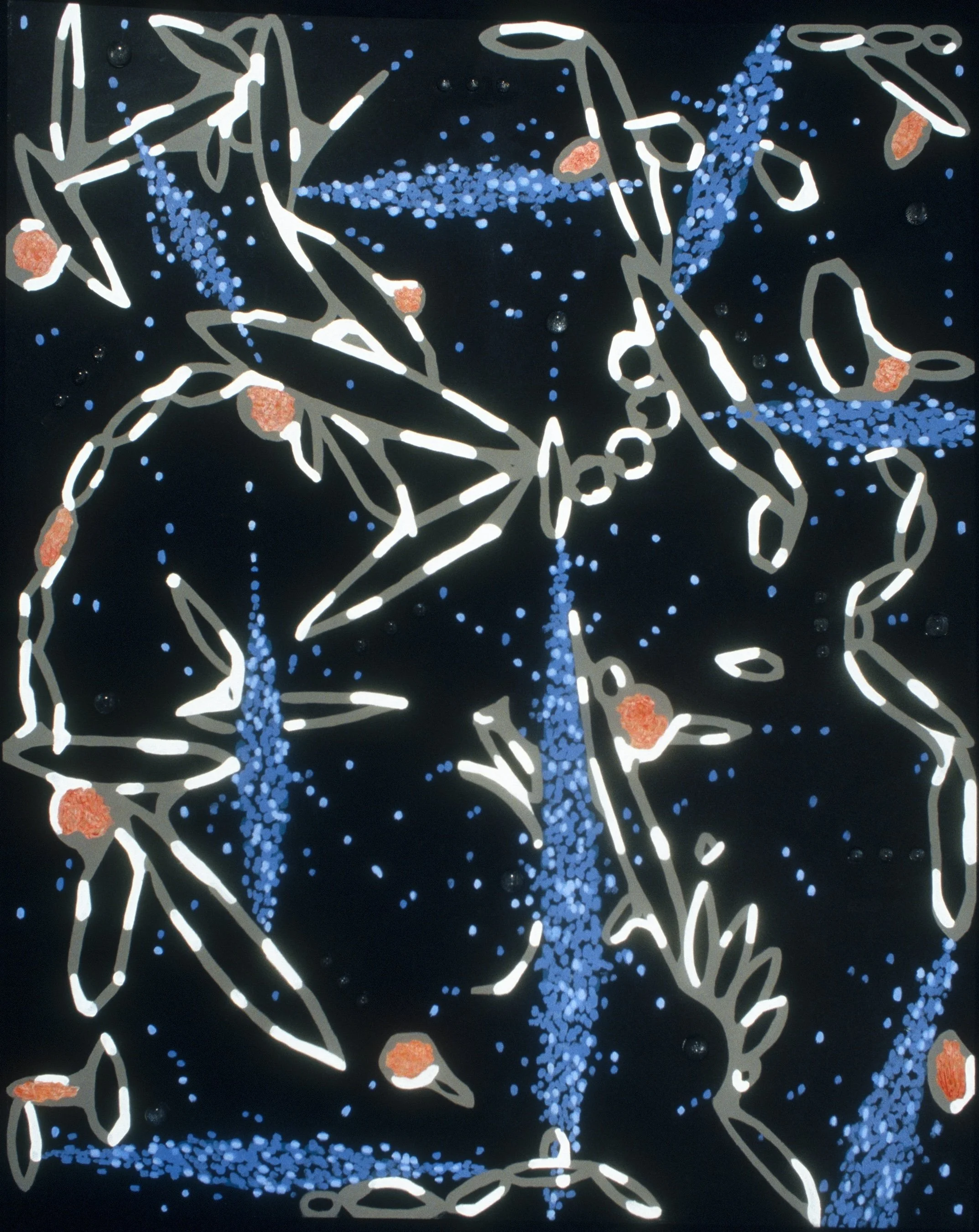 Acrylic on plastic panel, plastic half spheres 36 x 48in